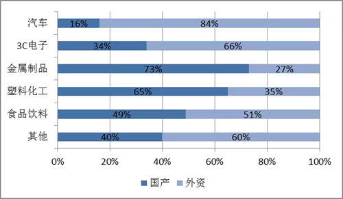 圖3 2018年國產(chǎn)和外資機(jī)器人本體應(yīng)用占比,資料來源:中國電子學(xué)會(huì)整理